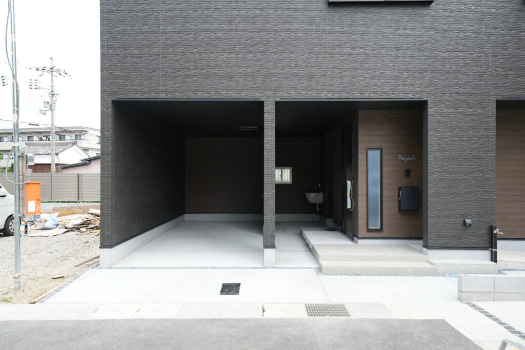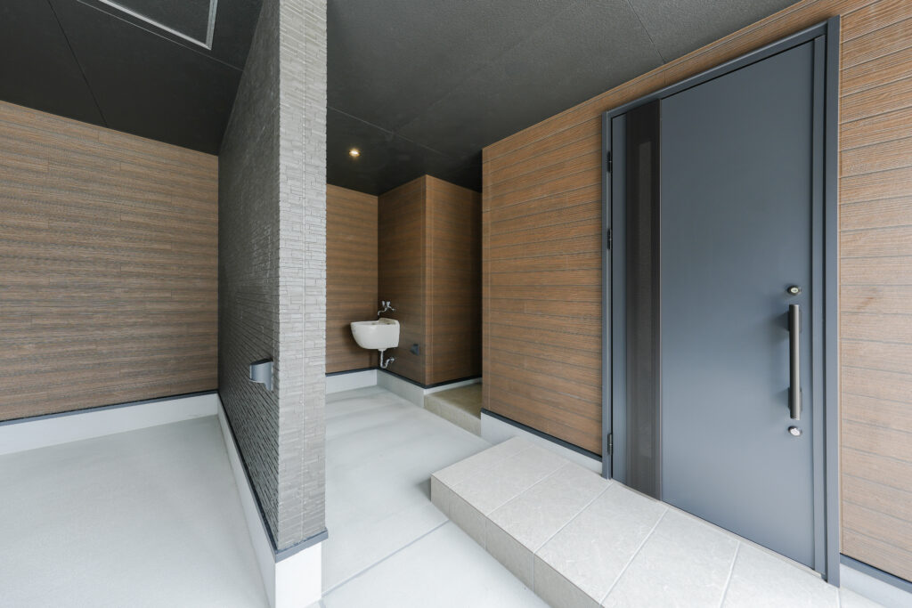 また、外構にもこだわりました。玄関ドアは外から家の中が丸見えになってしまわないように、前面道路に対して横向きに設置しました。周囲の目を気にせずドアを開けられるので、朝のゴミ出しも安心して行えます。