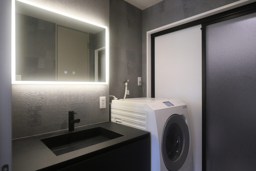 リゾートホテルにありそうな黒いデザインを選んだのですが、シンクが浅く、顔を洗うと水が跳ねてしまうんです。