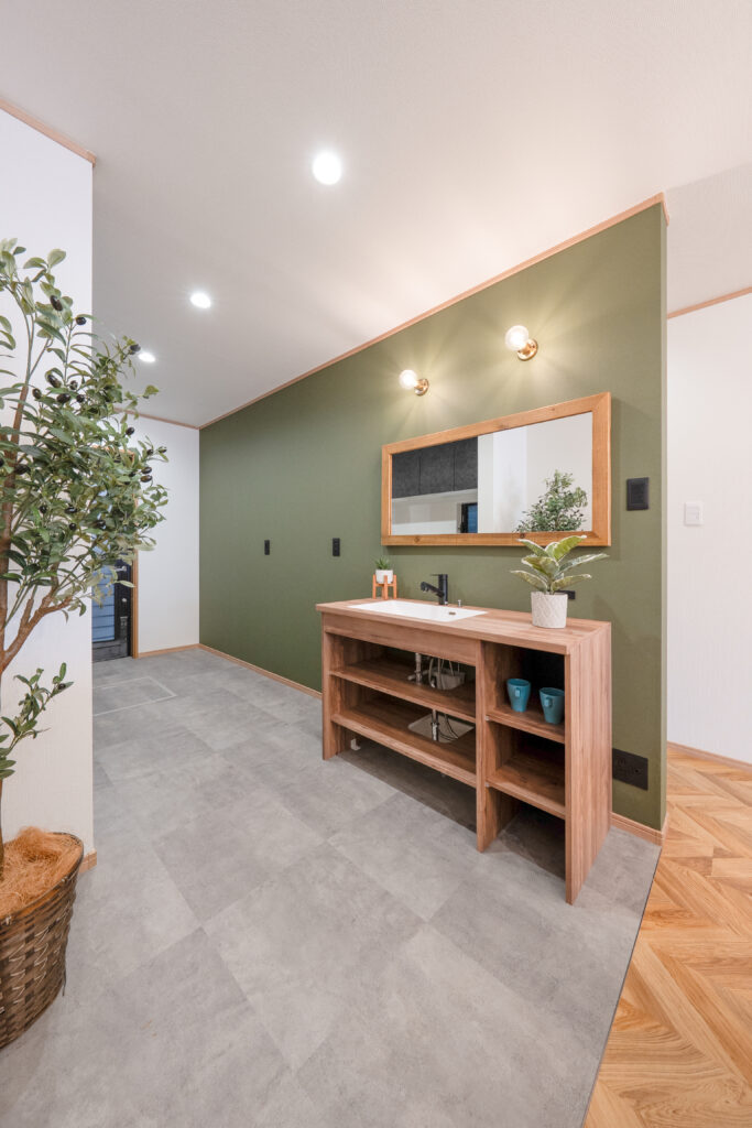 LDKのポイントとしておしゃれな洗面台を入れた例も。