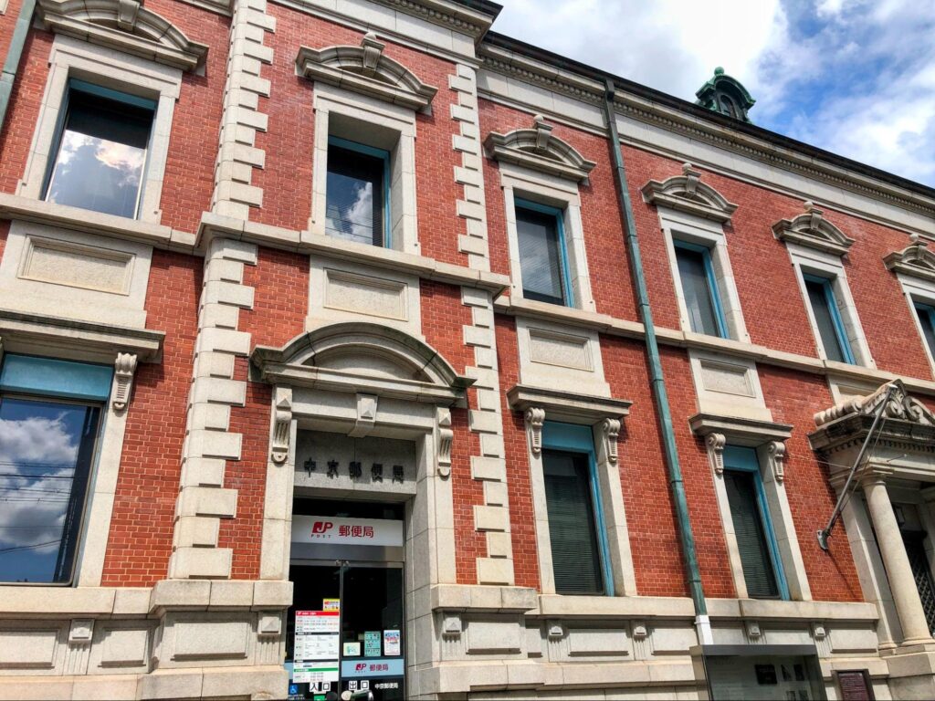 東洞院通を挟んで京都文化博物館と並んでいるのが、京都の登録有形文化財である「中京郵便局」。