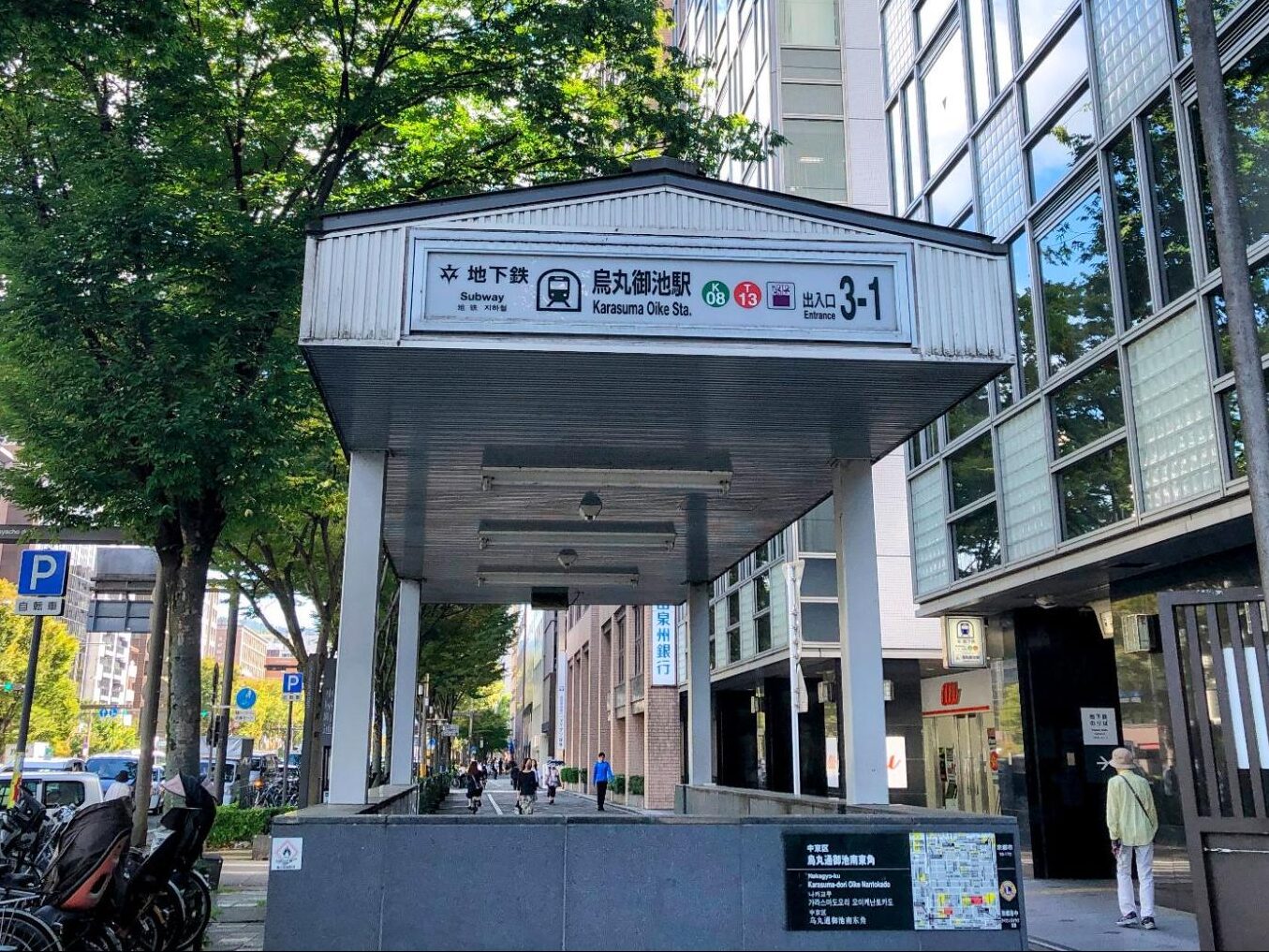 烏丸通と御池通が交差する場所にある烏丸御池駅。他地域の人にとってはなかなか珍しい駅名で、「からすまおいけ」と読めないことも多いとか。