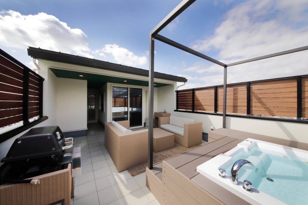 好きな時に入れるジェットバスは自慢のプライベートエリアに。 夏はクールダウンに最適。冬のキリッとした寒さの中で入れば、 さながら高級ヴィラのよう。 お子様とワイワイ、おひとりでゆったりと、どんな過ごし方も 思うがまま。 広い空を仰ぐジェットバスで、あなたの日常がグッとリッチになります。