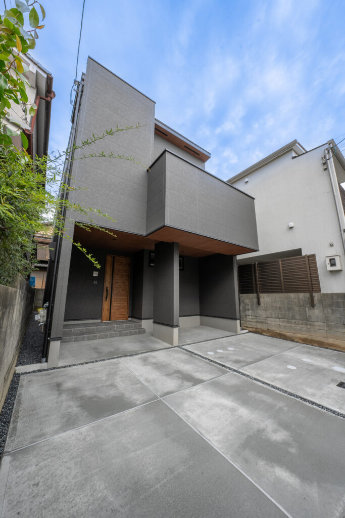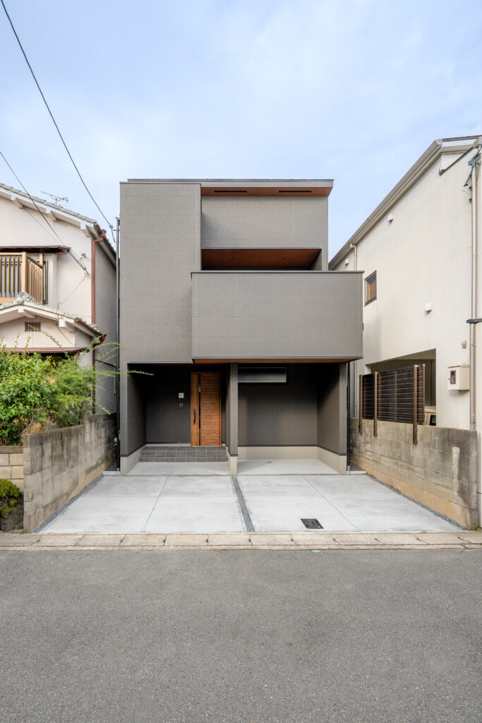 外装はグレーの一色でシンプルに。ラグジュアリーホテルのようなスタイリッシュなお家に。