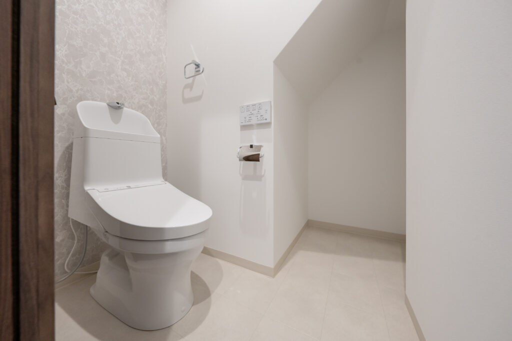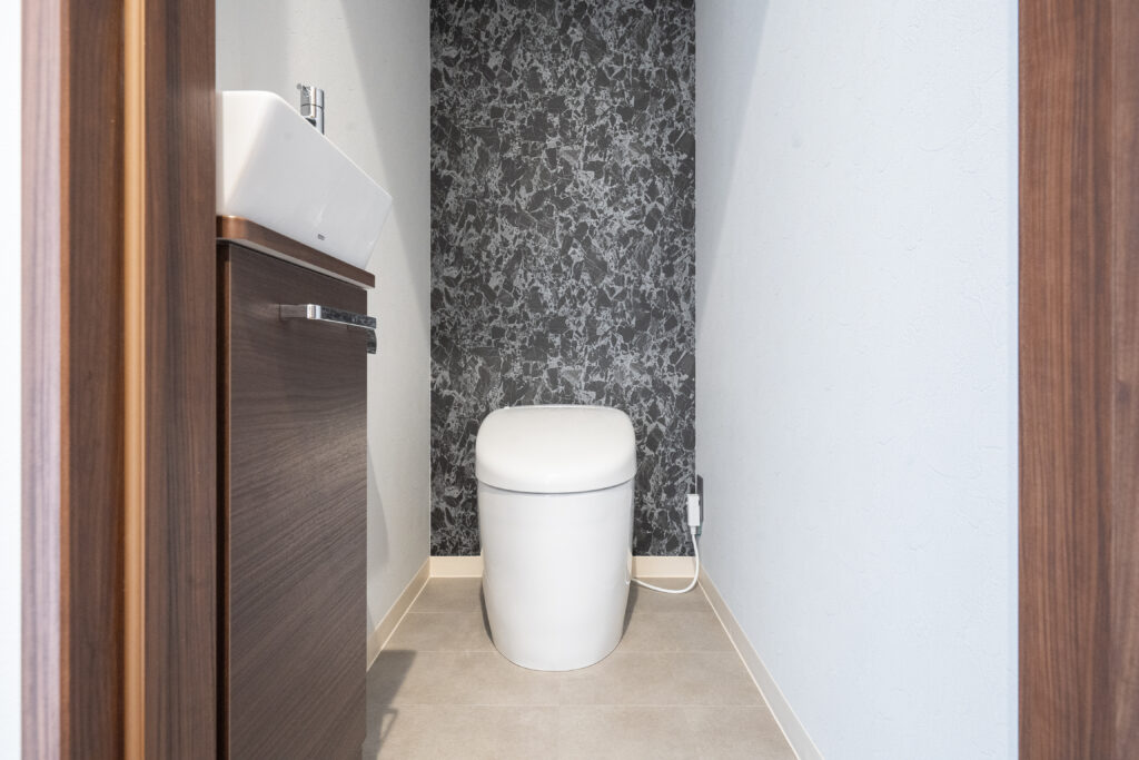 2階のトイレはアクセントウォールでシックに。