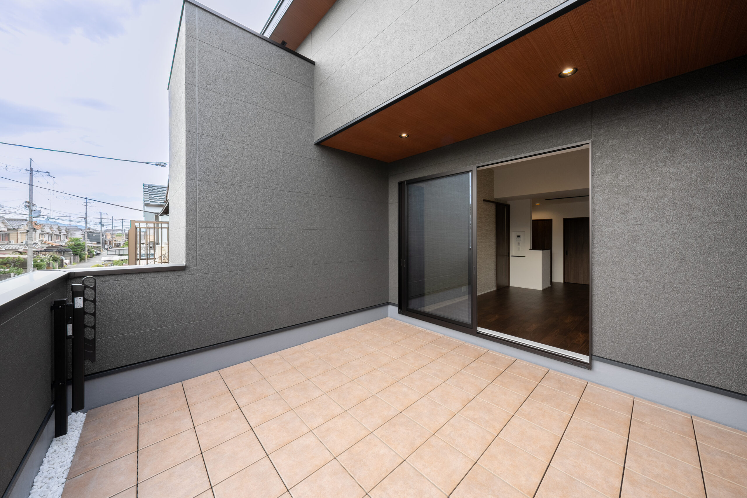 LDKの延長線上には、ブラック×木目調がおしゃれな8帖の広々バルコニー。