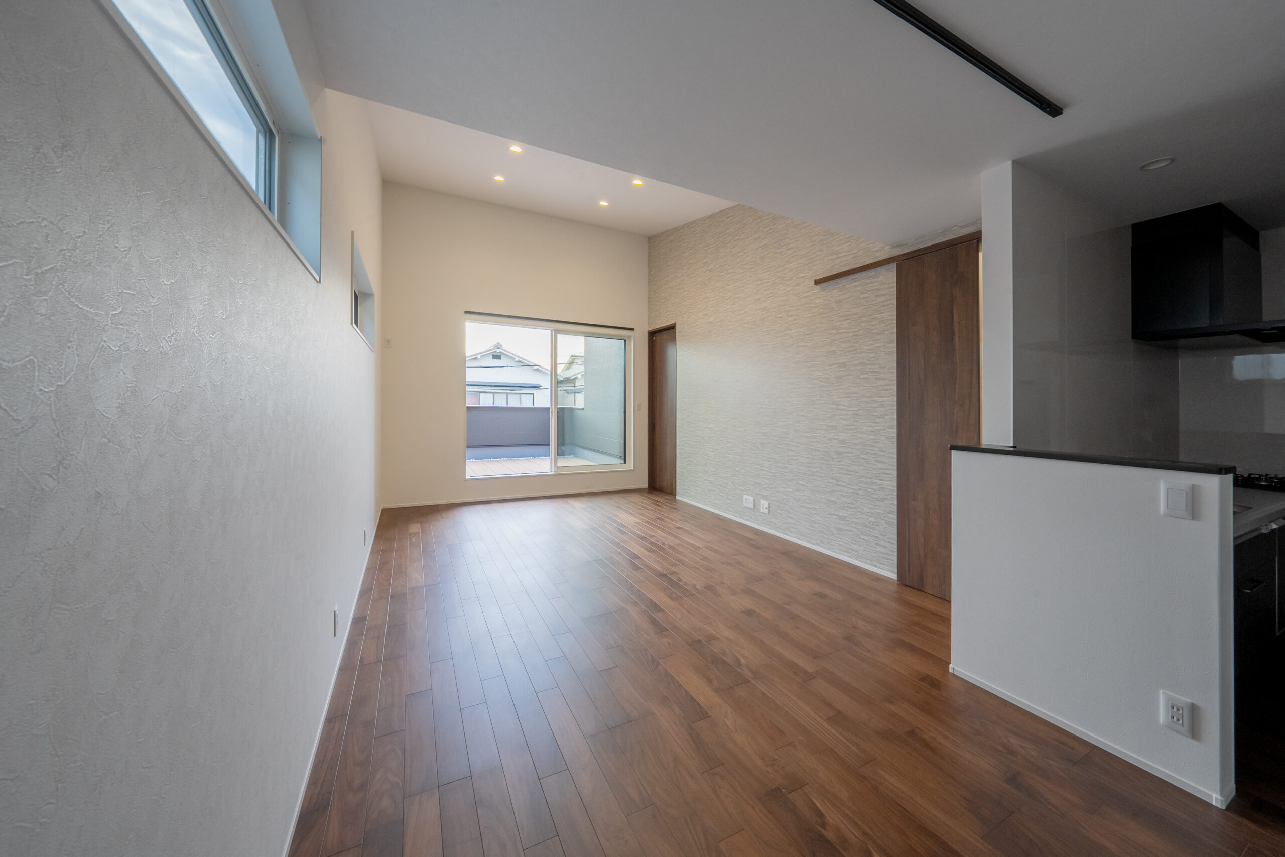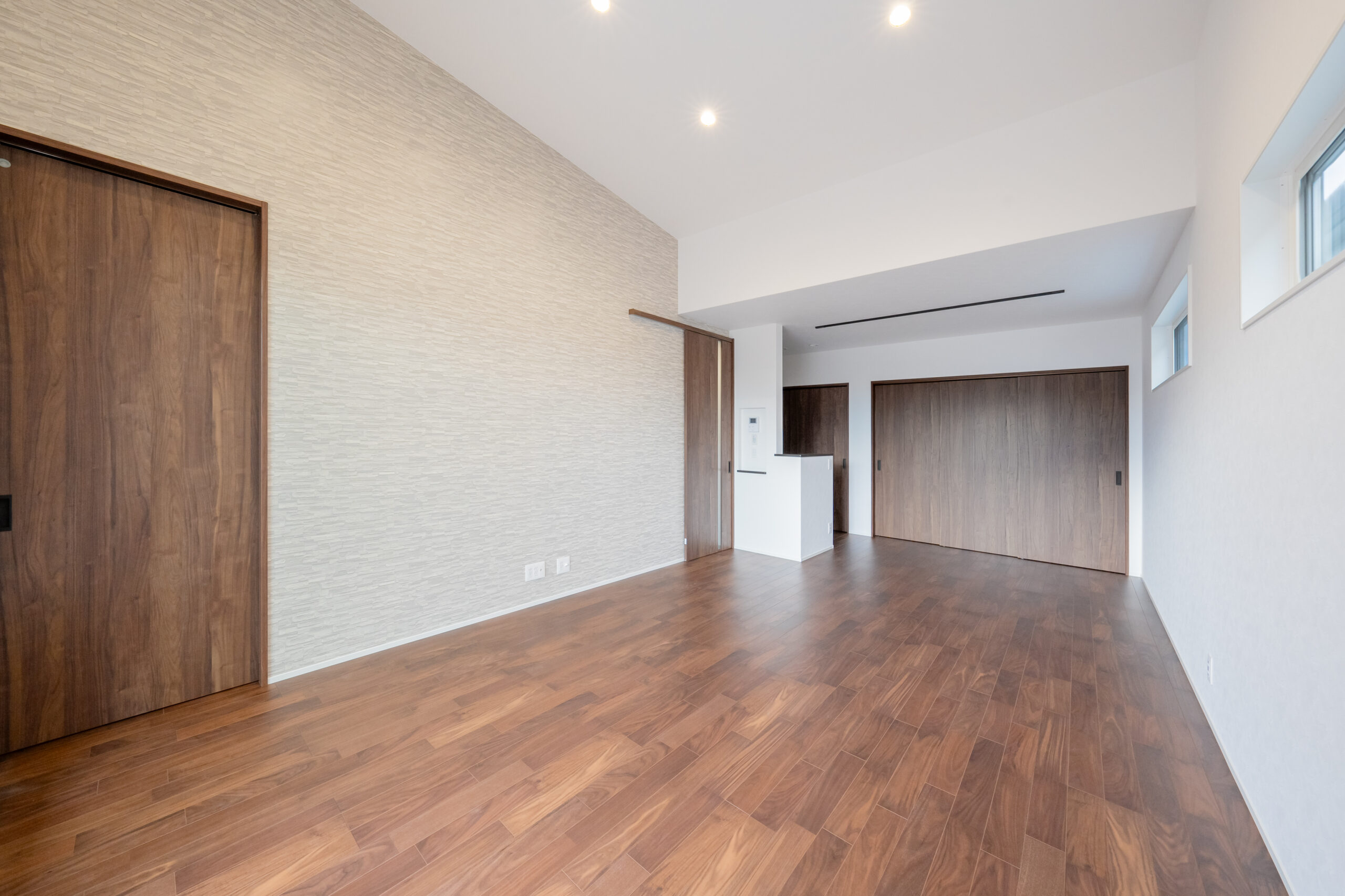 勾配天井として天井を高くすることで、開放感のある広々空間に。