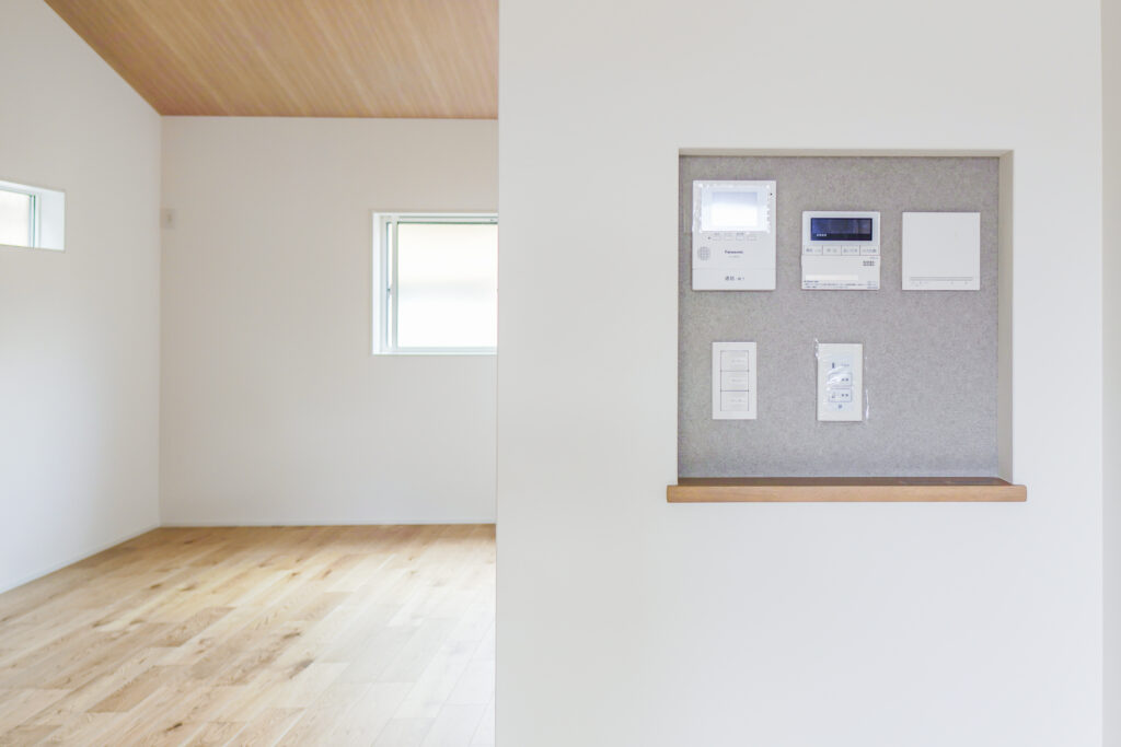 リビングから見えないダイニング側の壁にスイッチ用のニッチを設置。