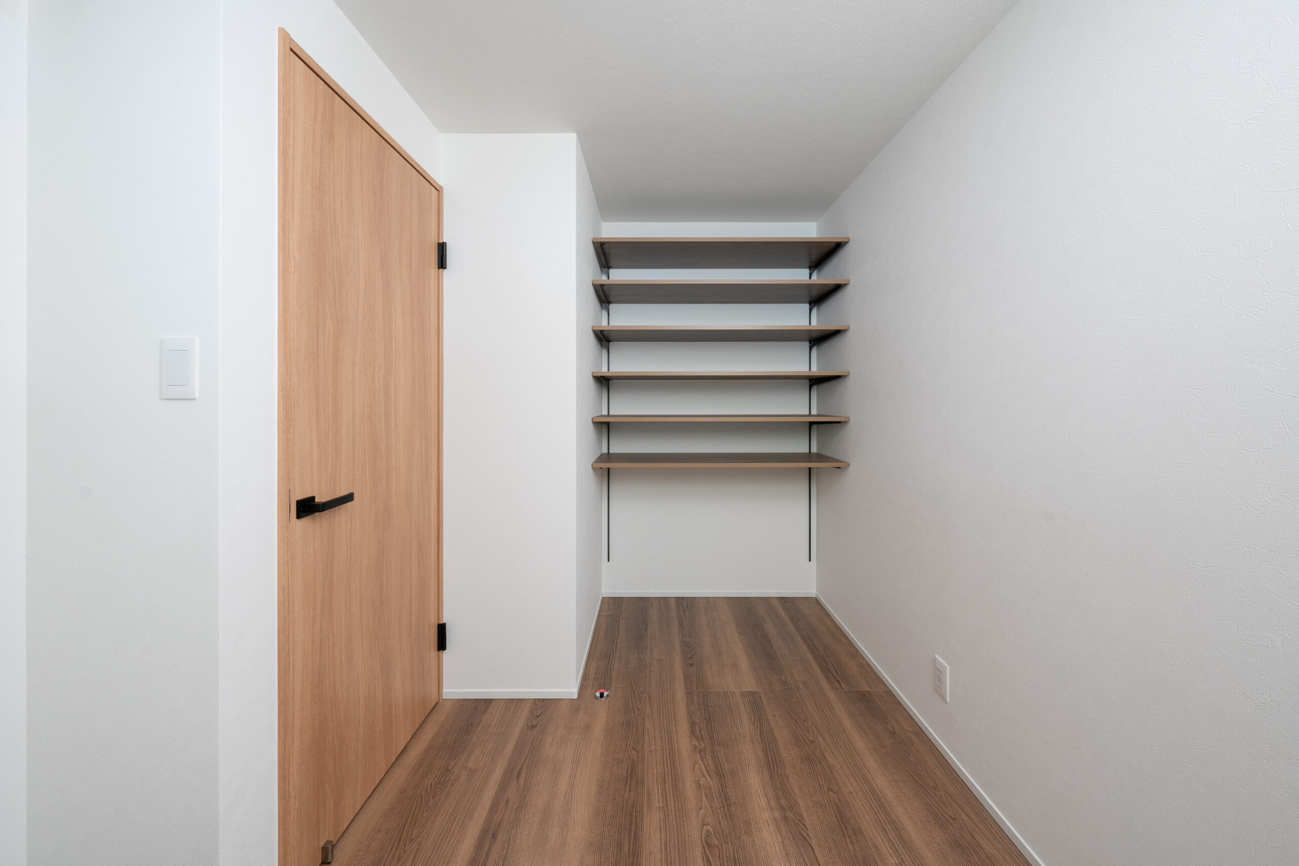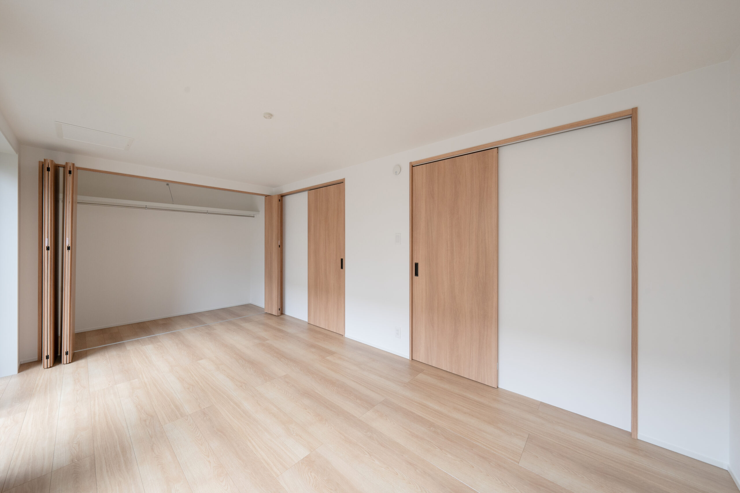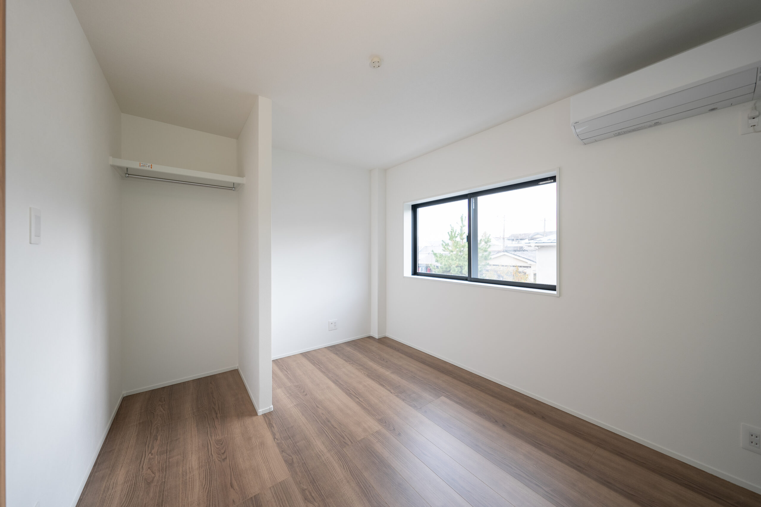 主寝室はウォークインクローゼットも備えています。扉のないセミオープン仕様で、広く感じられる空間に。