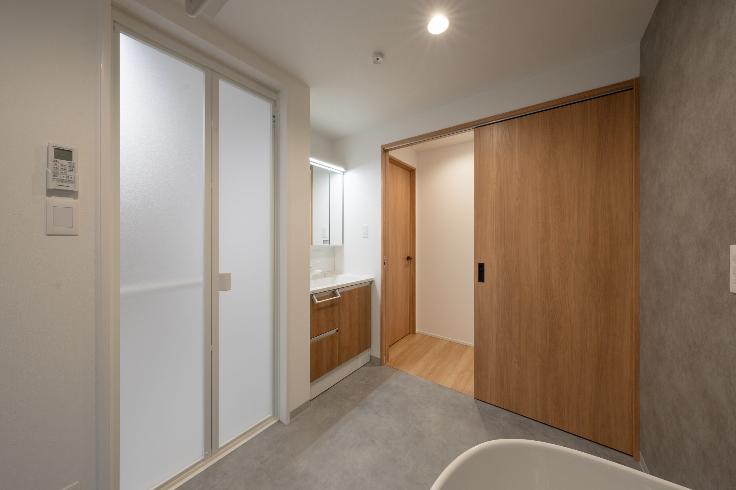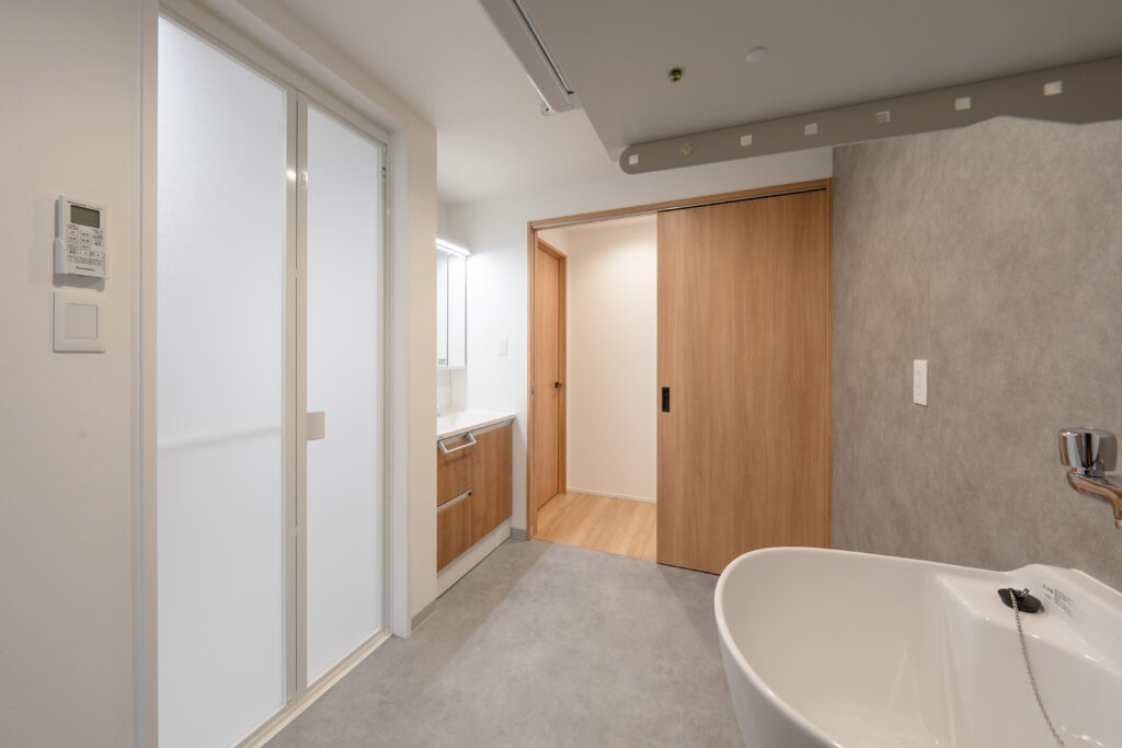 プライベートスペースの多い1階には、余裕のある洗面・脱衣・洗濯スペースがあります。