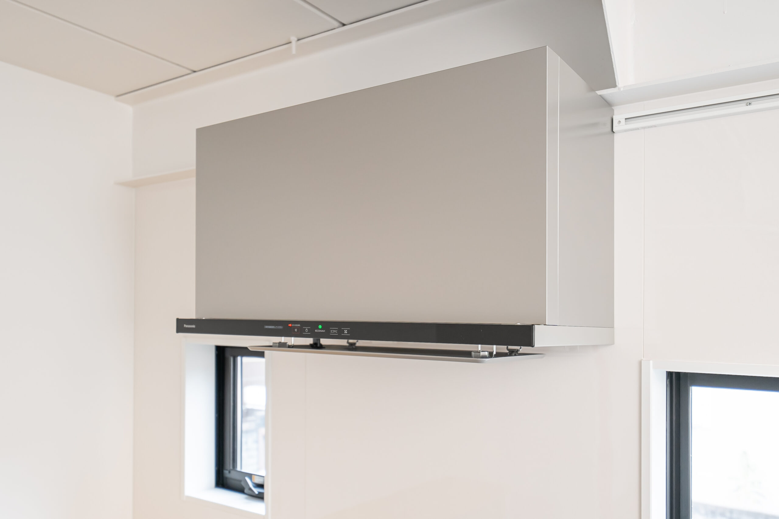 壁面にしっかりと収納をとってあるので、カップボードを置く必要はありません。