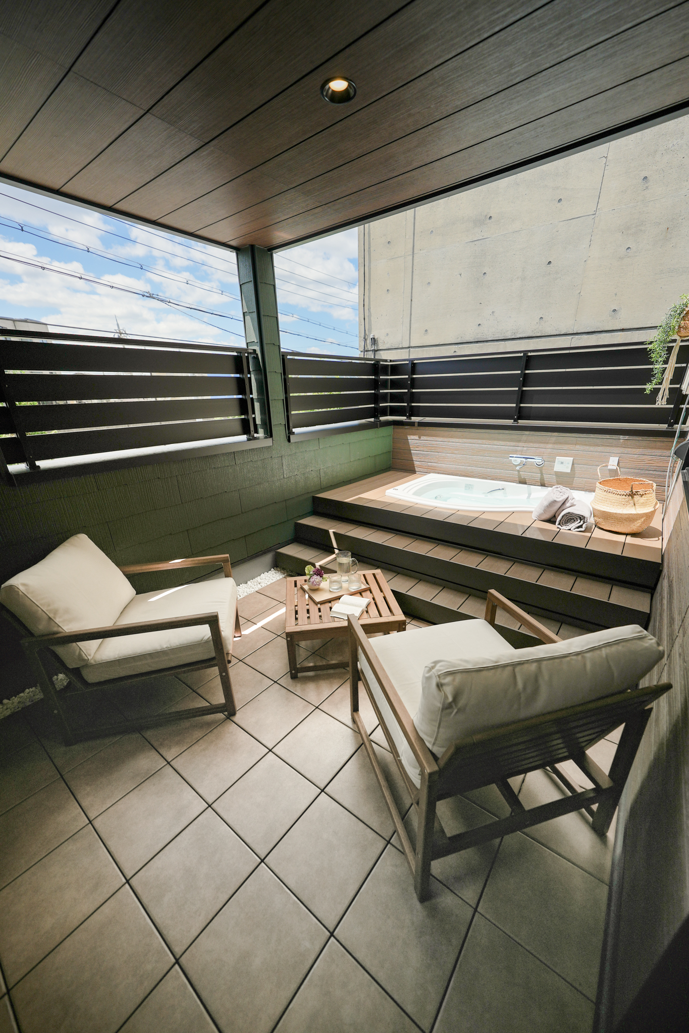 朝の食事や読書のひとときを、青空を眺めながらテラスでゆったり楽しみたくなる、空と風が心地良い空間です。