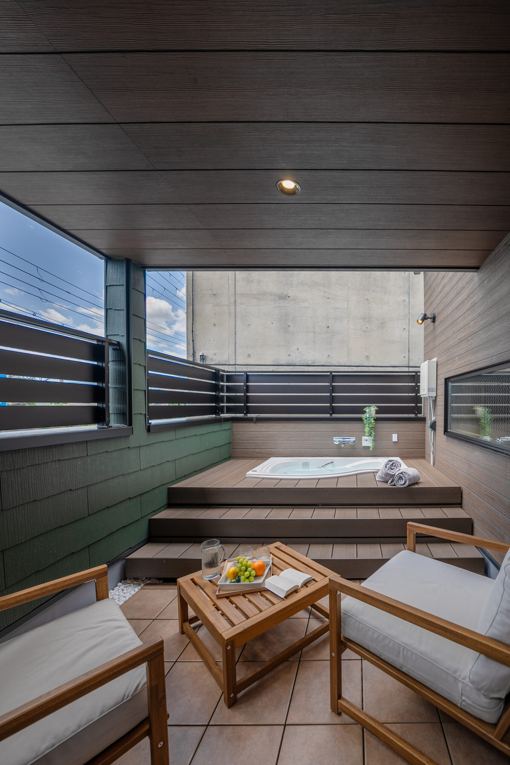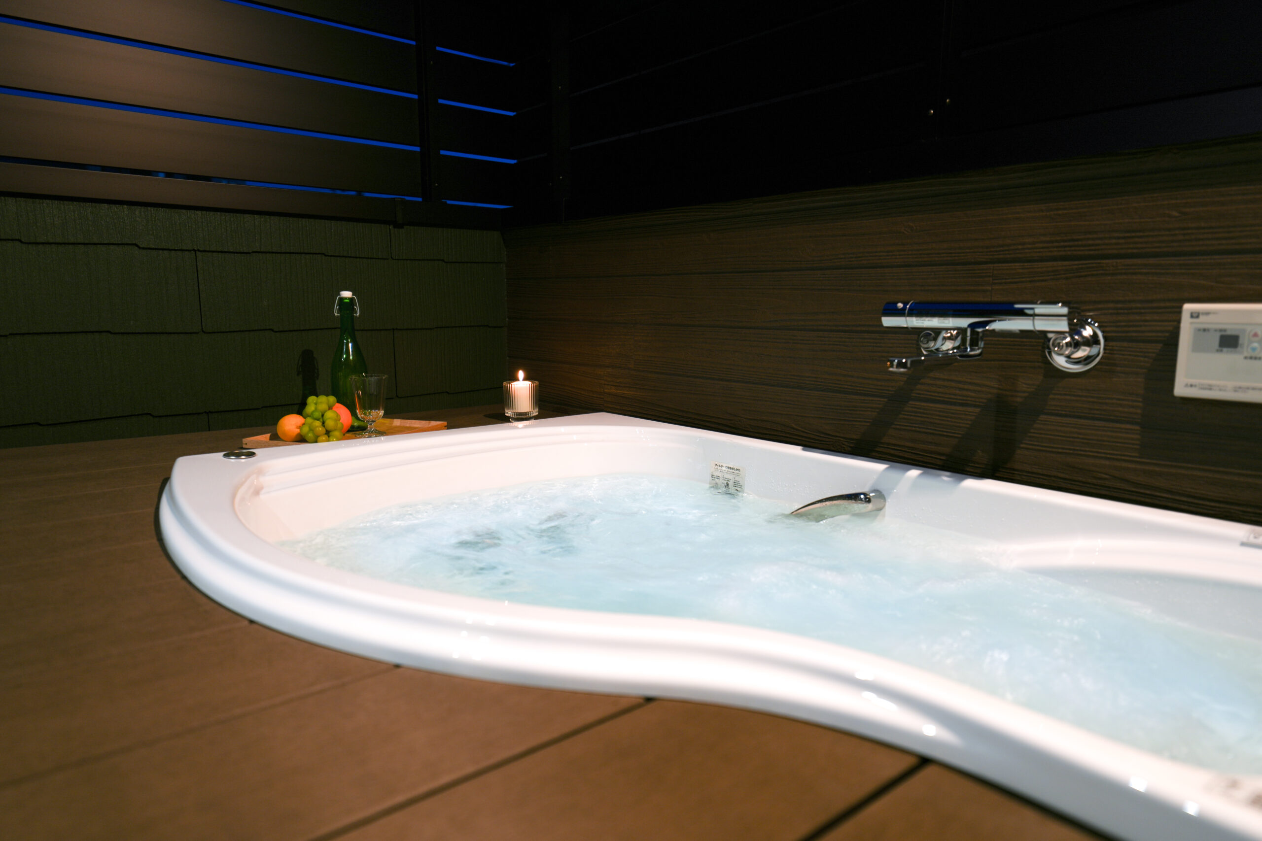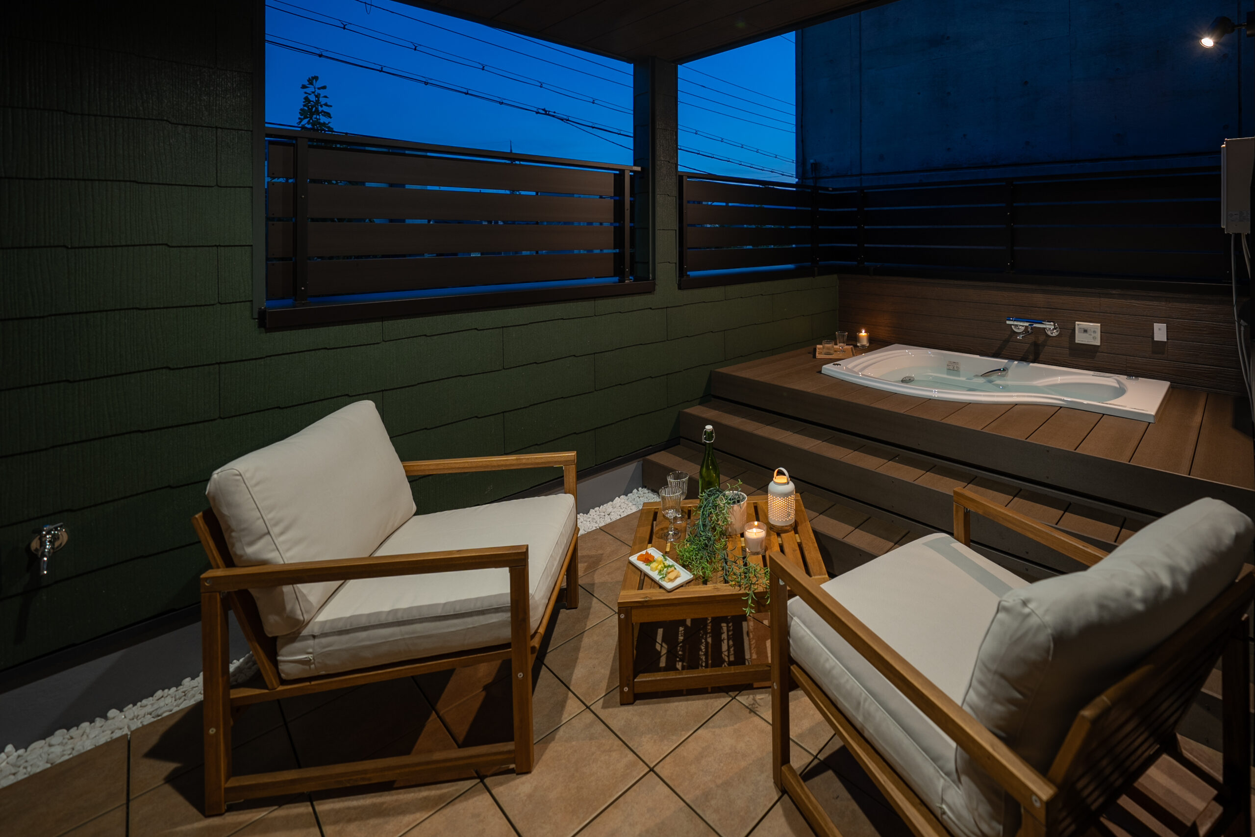 深夜のジャグジーは、まるで異国のリゾートにいるかのような感覚を味わえます。