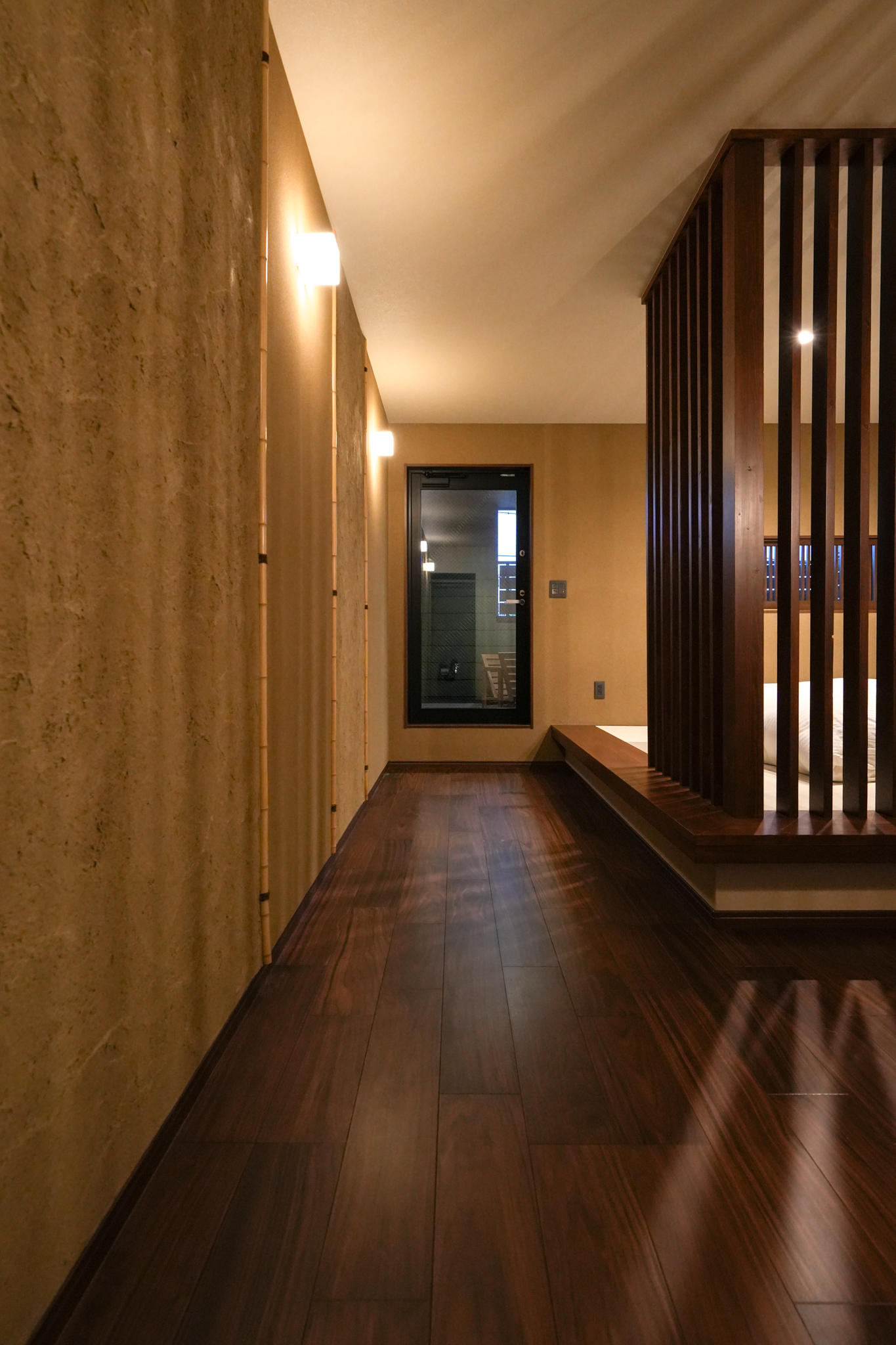 京都の左官「京都のぬりかべ屋 三谷佐官店」さんによる、京都の土を使った土壁が2面に施工されています。
