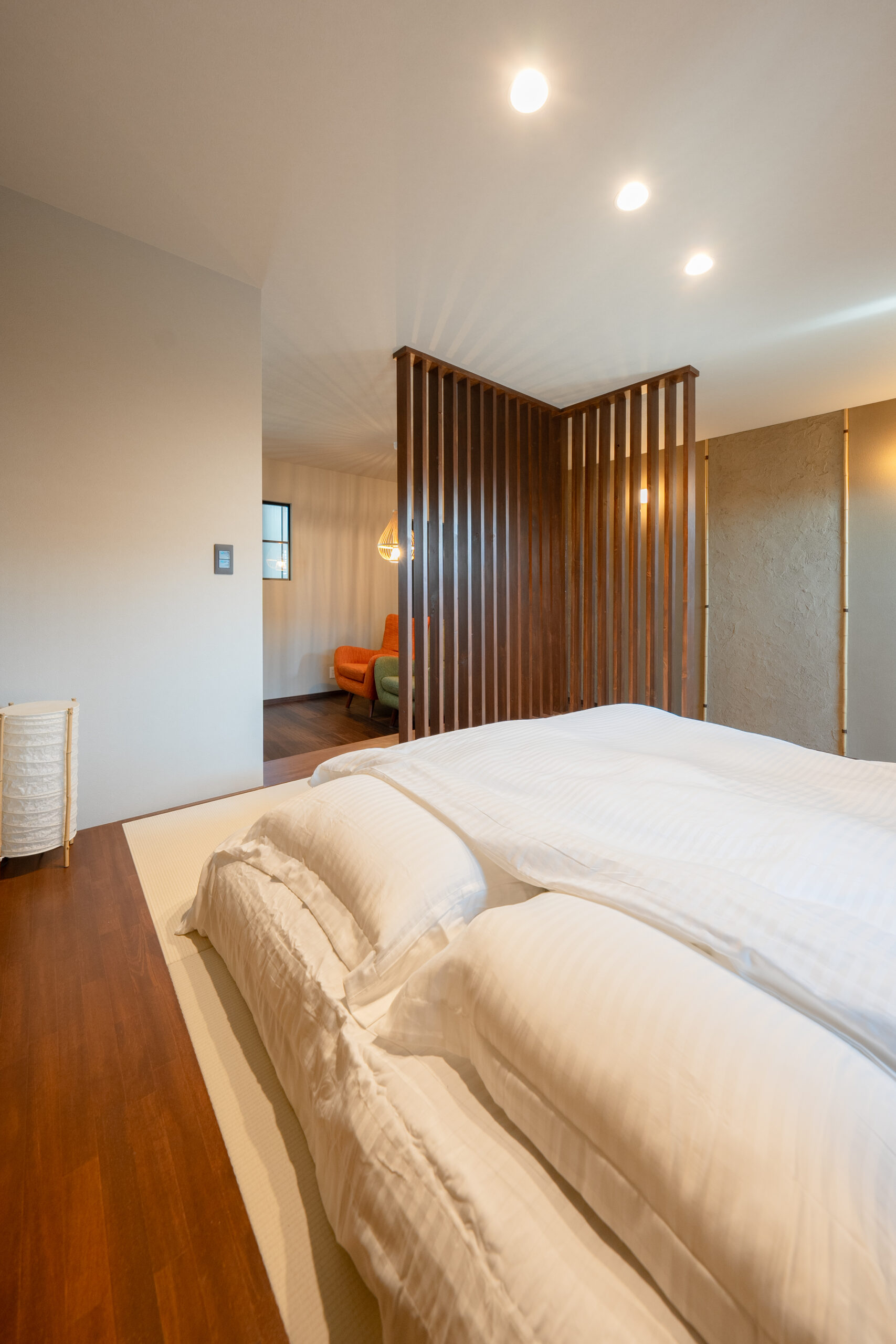 天井に照らされた光が、部屋全体を優しく包みます。