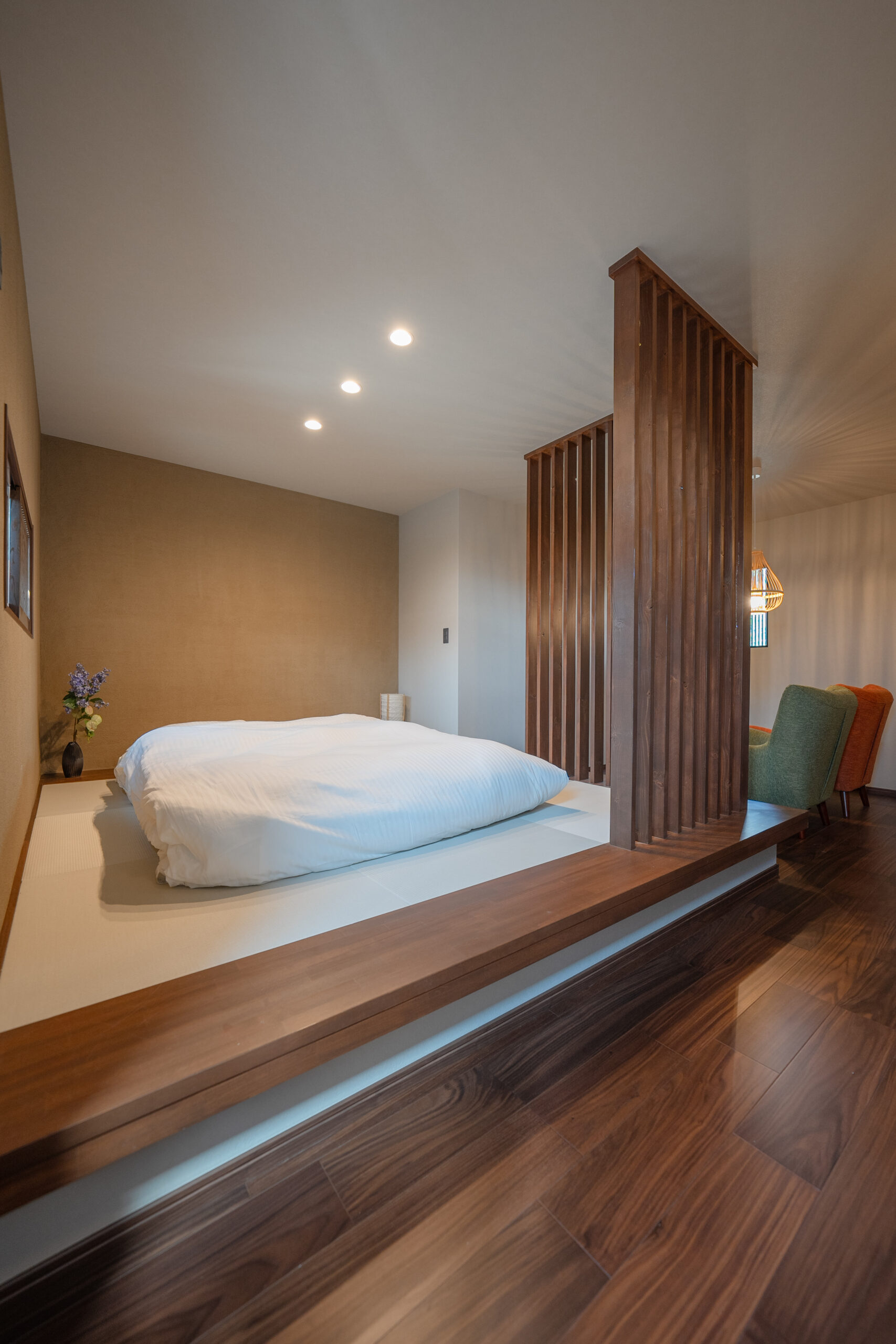 寝室として利用できるタタミスペースを配した、13.5帖のセカンドリビング。