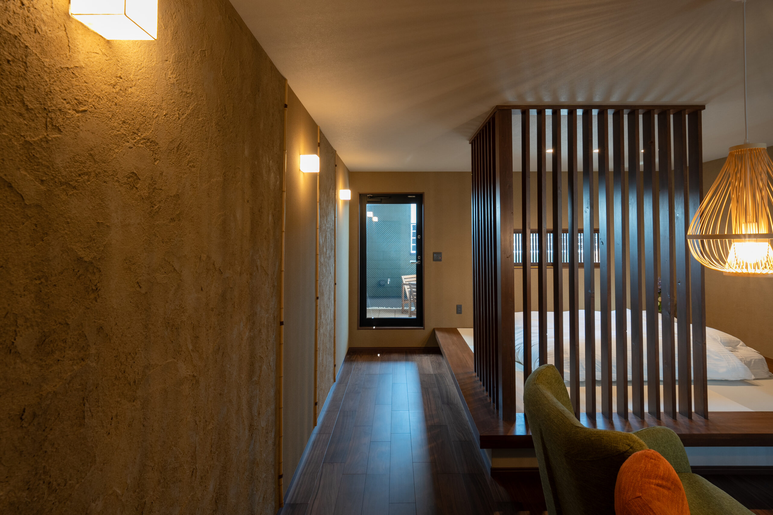 3Fのセカンドリビングルームでは塗り壁が趣きがあります。