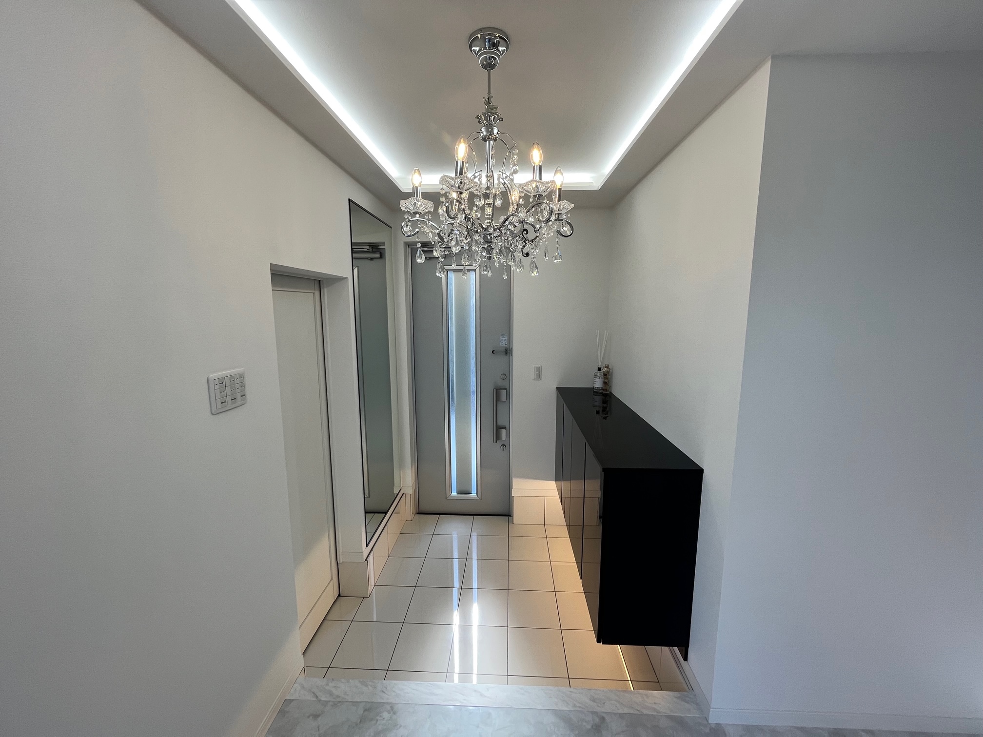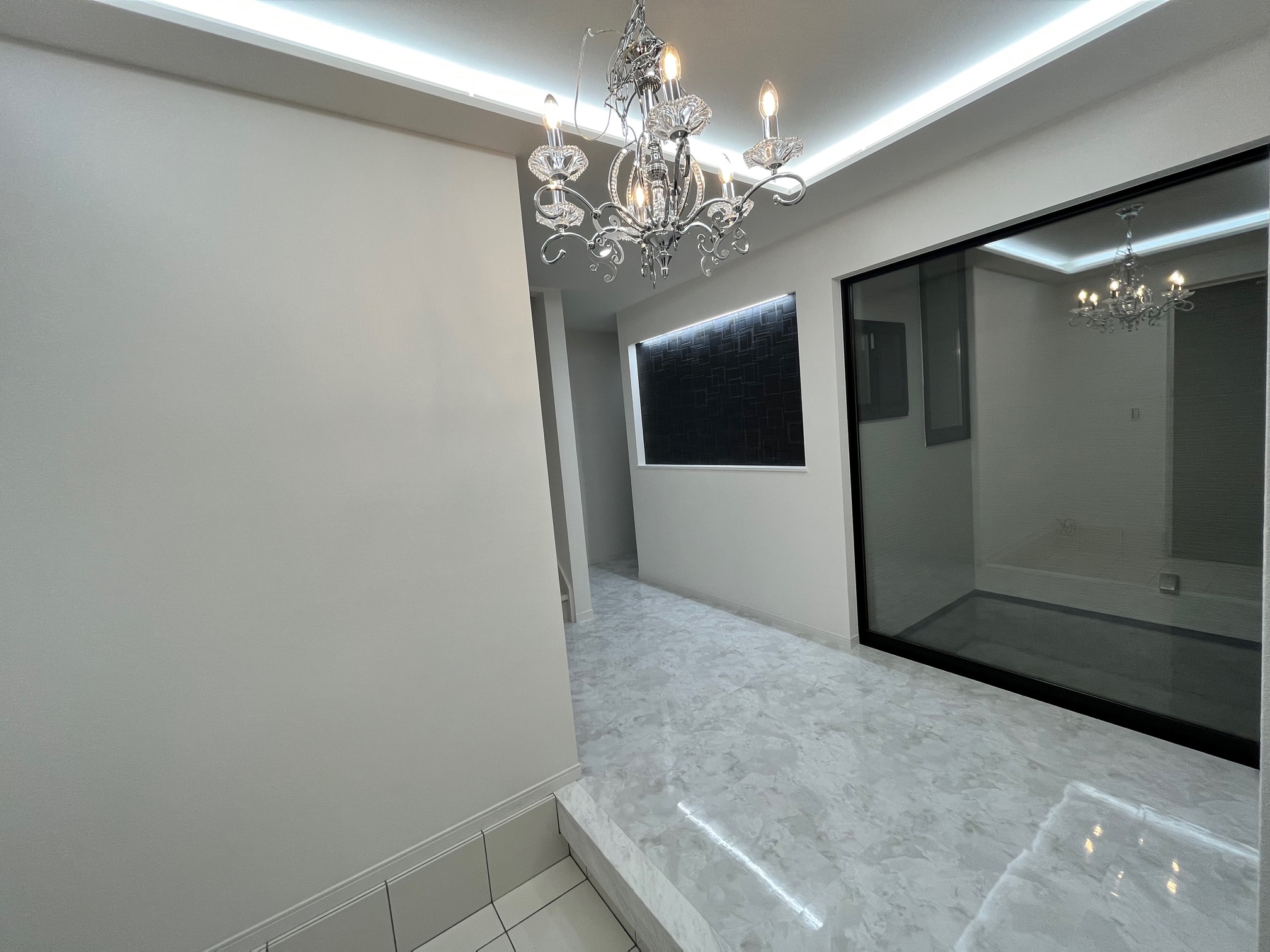 夜の時間を楽しめるようにライトを増設したテラス空間で、ご家族で豊かな時間が過ごせるお住まいを選択されました。