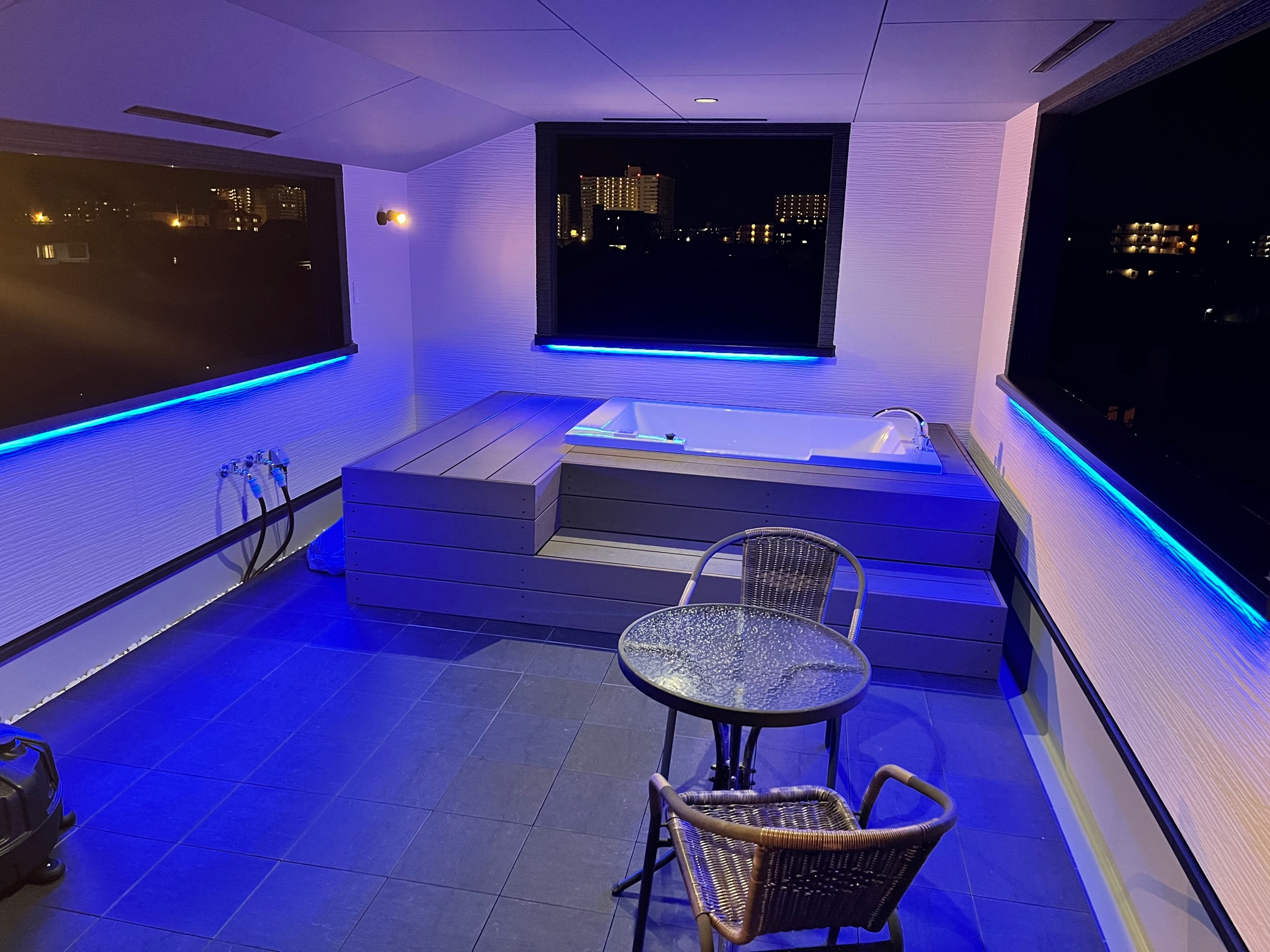 ジャグジー上には屋根を設置し、どんな天気でも楽しめる仕様です。