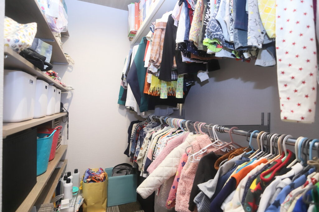 ご主人様:間取りの変更などの要望には柔軟に対応していただき、非常に助かりました。LDKのクローゼットも私たちの要望から出来上がりました。もともとはバルコニーになるはずの空間でしたが、使う場面がないと考え、一部をクローゼットにしました。子どものおもちゃなどの収納場所として役立っています。