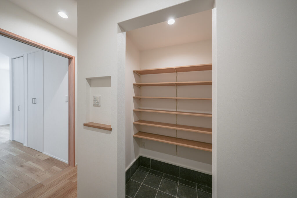 奥様:収納の確保にもこだわりました。家族6人もいると靴もかなりの数になるうえ、ベビーカーはA型、B型の2台があります。それらをすっきり収納できるように、玄関には大きめのシューズインクローゼットを設けました。