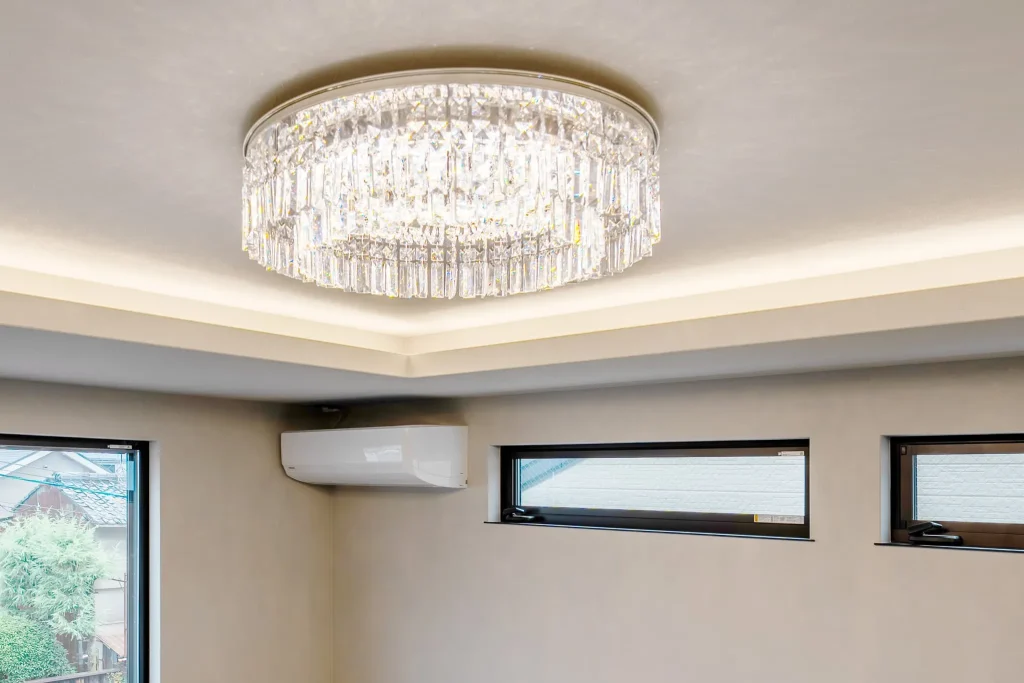 「引越し前から、このシャンデリアをつけるって決めてたんです」と語られるY様。