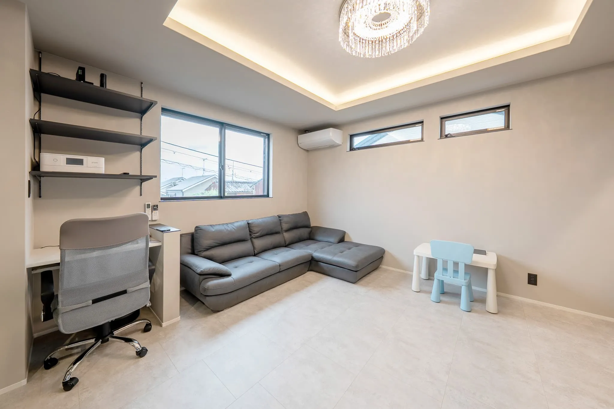 ご自宅横に少しスペースを残しておられるので、お子さんのお友達など、自転車での来客時に車と話して駐輪してもらえる点も、ちょっと嬉しいポイントです。
