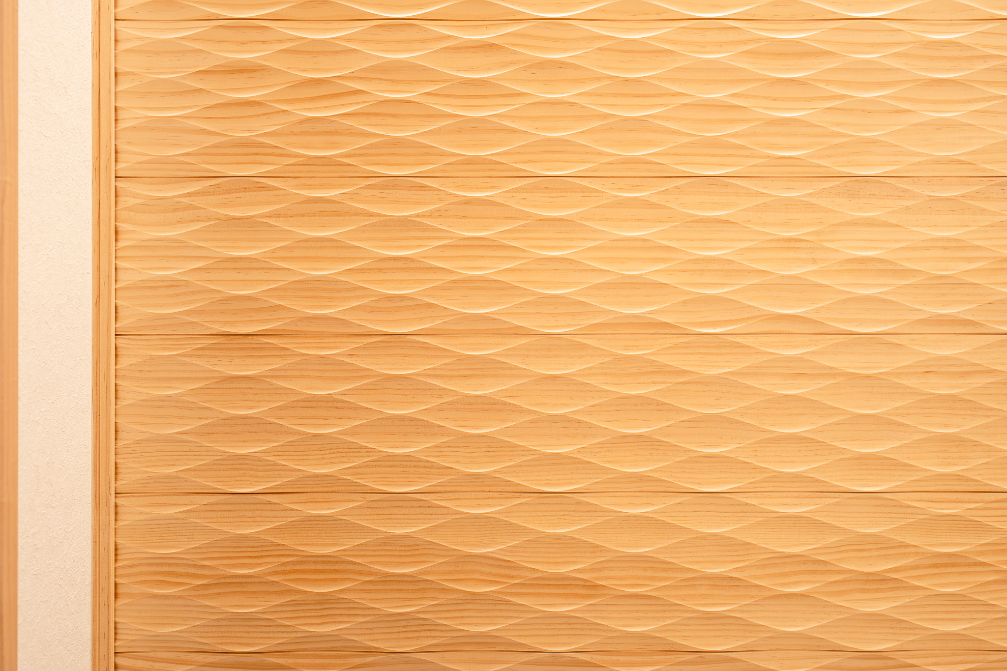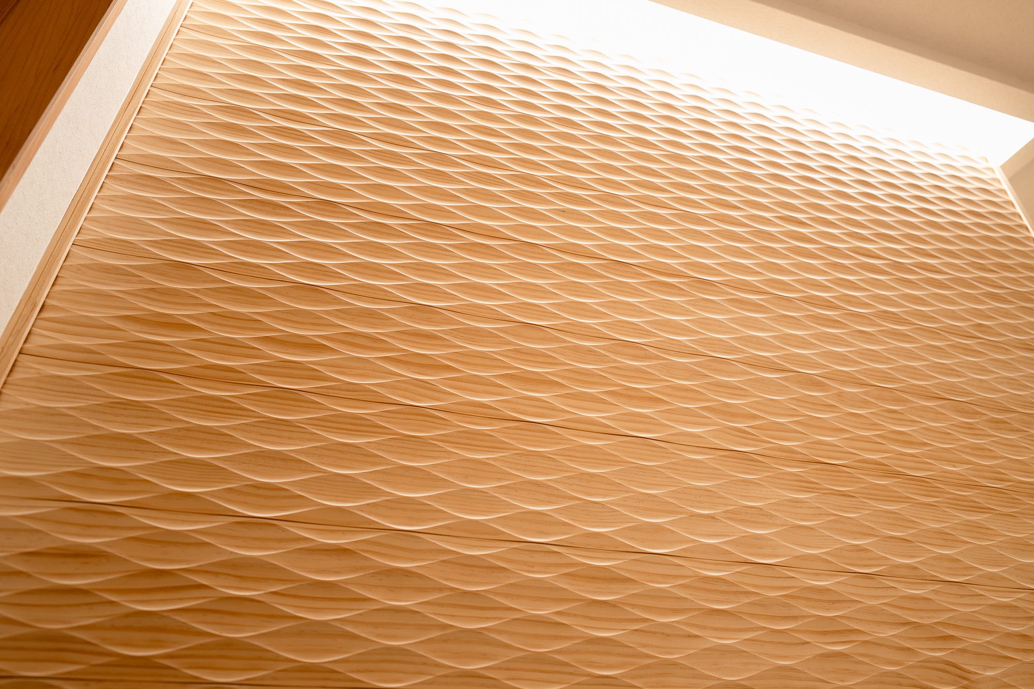 陰影が美しいスプーンカット(なぐり加工)の壁。