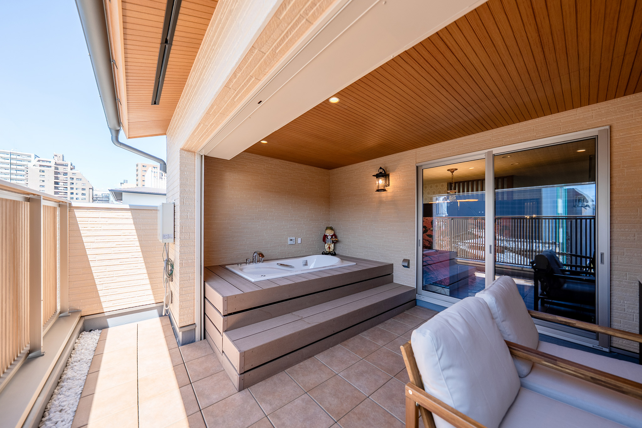 ベッドスペースの奥はテラス&ジャグジー。